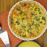 Egg mixture ko pour karein,preheated oven mein 180 C per crust golden brown hunay tak bake ker lein.