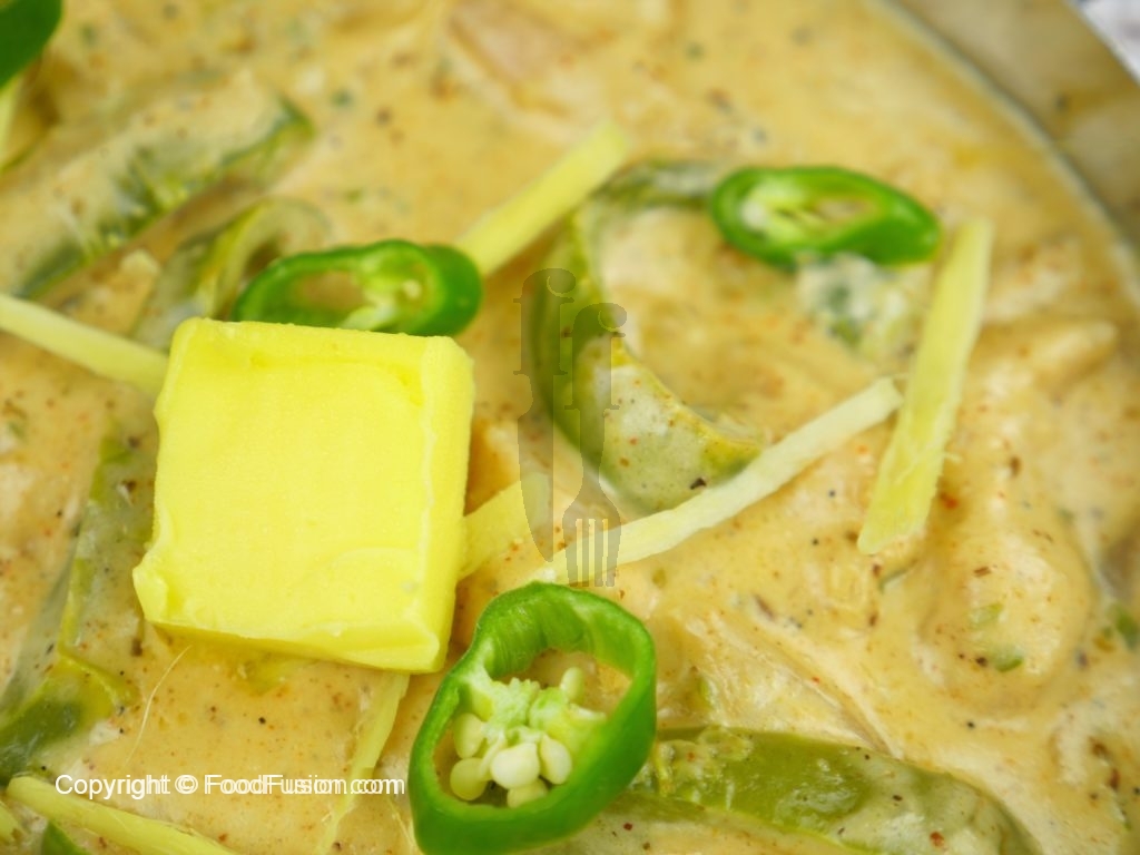 Adrak,hari mirch aur makhan sa garnish karein.