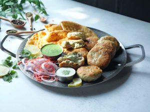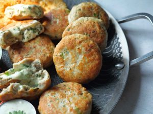 -Serve with prepared yogurt green sauce!