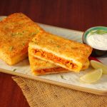 -In another flat bottom pan, add prepared bread crumbs, coat prepared bread sandwich.