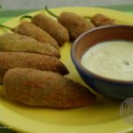 Take out chilies from water and pat dry them. Put a chicken slice and cheese inside the chilies and set aside.