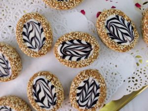 -Take a small quantity of mixture (30g),make a ball & coat with roasted sesame seeds.