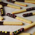 -Dip cookie sticks in melted chocolate & decorate with multi sprinkles.