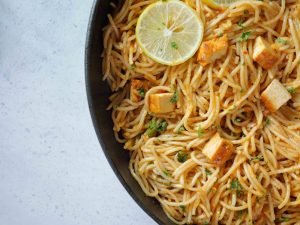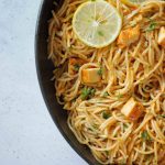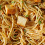 -Boil spaghetti with salt until 70% done & take out 1 cup of pasta water for later use.