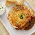 -On a serving plate,add fried potatoes,fried cheese egg,fresh coriander,green chilli & serve with French bread,sour cream & chilli garlic sauce!