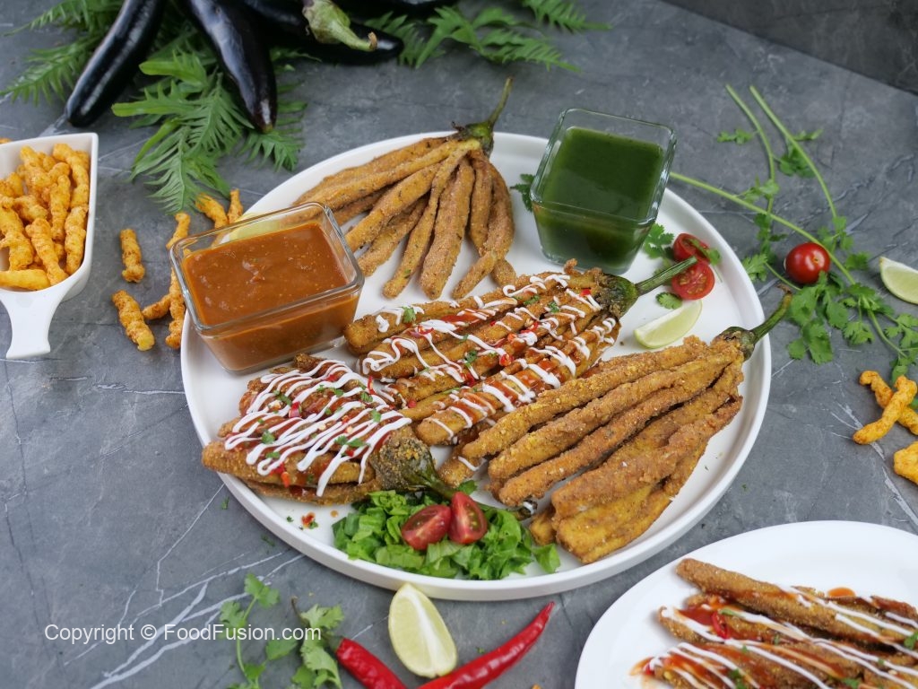 -Baking tray per butter paper laga lein aur cooking oil sa grease ker ka baingan pakora rakh dein.