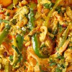 -Pyaz aur Shimla mirch ka mixture dal kar achi tarah mix karein aur darmiyani ancch par 4-5 minutes kliya paka lein.