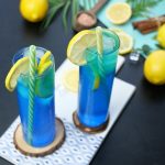 -In a serving glass,add ice cubes,lemon slices,7up,prepared blue curacao syrup (2 tbs) & stir well.