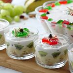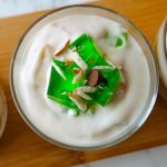 Red & green jelly dal ker mix karein (serving sa pehlay jelly shamil karein).