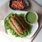 Grease hands with oil,take a mixture and make kababs of equal sizes on skewers then coat in mixed vegetables (makes 10-12).