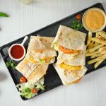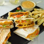 -Toast stuffed tortilla wrap on cast iron griddle from both sides until golden.