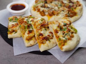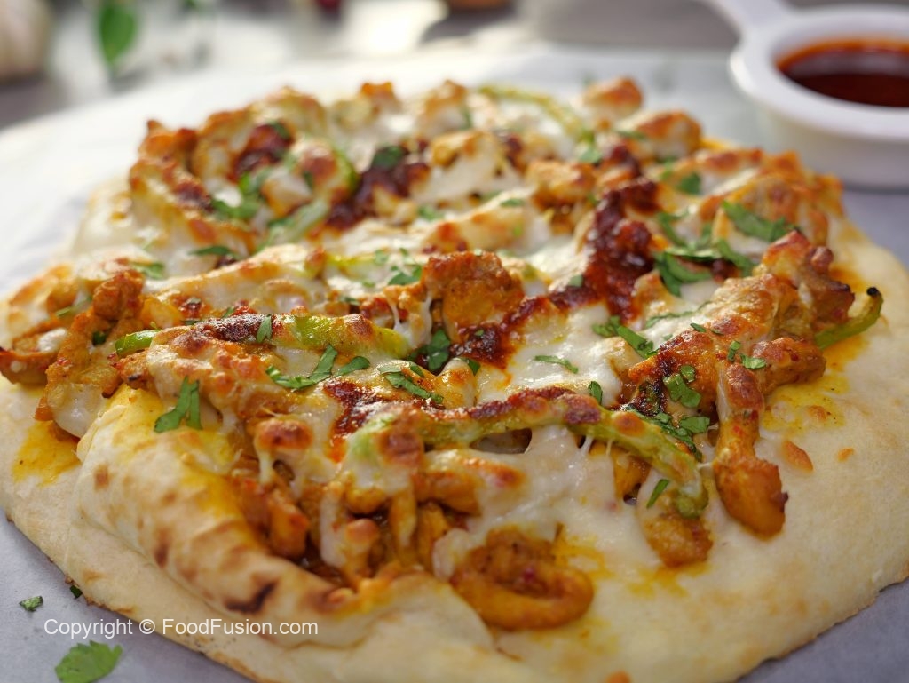A flatbread layered with harissa chicken and mushrooms — simple yet unforgettable. Every slice brings a perfect balance of flavor. #happycookingtoyou #foodfusion #araywahh