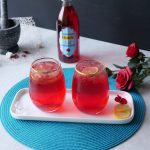 -In a serving glass,add ice cubes,basil seeds,water,lal sharbat and stir.