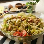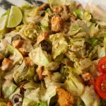 -Bowl mein chopped iceberg lettuce,olives,pickled jalapenos,sumac powder,darchini powder aur lemon juice dal ker ache tarhan mix aur toss ker lein.