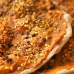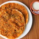 Spread prepared paste,sprinkle dried pomegranate seeds and green gram.