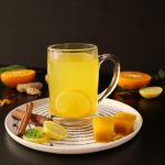 -In a blender jug,add peeled lemon,ginger,turmeric powder,black pepper powder,cinnamon powder, garlic,apple cider vinegar,orange juice,water & blend well.
