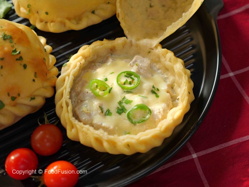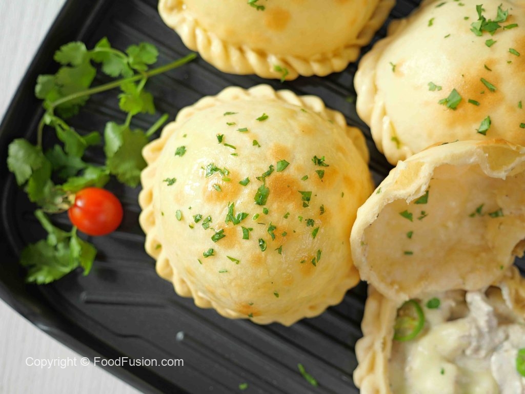 -Dough ke center mein tayar shuda chicken filling rakh den, mix cheese, hari mirch aur hara dhania dalein.