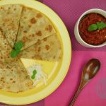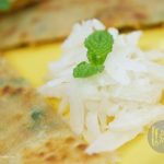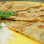 Heat griddle and place rolled paratha on it, fry from both sides with ghee.