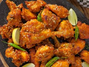 In frying pan,add oil and add marinated chicken,cook until chicken is done,set aside.