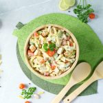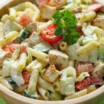 -Bowl mein penne pasta,grilled chicken,kheera,tamatar aur iceberg dal ker ache tarhan toss ker lein.