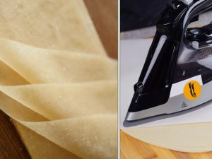-Coat prepared pancakes with rice flour mixture.
