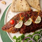 -Apply prepared marination paste (approx. ½ Cup) on fish & marinate for 15 minutes (reserve for later use).