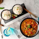 Garnish with reserved fried garlic,green onion leaves & serve with boiled rice.