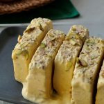 In an ice cream mold,sprinkle pistachios,almonds and add prepared mangi kulfa ice cream mixture, cover with cling film and freeze for 8 hours or overnight.