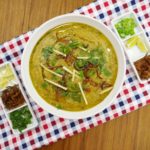 Garnish with desi ghee melted,fried onion,green chili,ginger,fresh coriander and lemon juice.