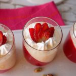 In serving glass,add prepared pistachio kheer enough to cover strawberry jelly and garnish with whipped cream & strawberry slices.