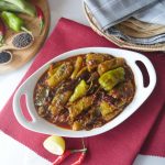 Peel ridge gourd and cut into three pieces,slit from the center & stuffed with prepared achar masala.