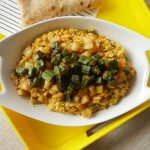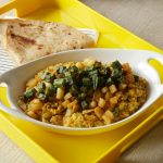 Serving plate mein egg mixture,fried aloo aur bhindi dal ker serve karein.
