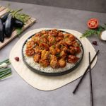 -Karahi mein cooking oil,tomato ketchup,gochujang hot pepper paste,soy sauce,sirka,cheeni,lal mirch powder,namak,cornflour aur pani dal ker ache tarhan whisk ker lein.