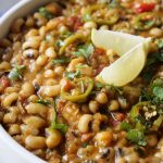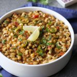-In a pressure cooker,add black eyed beans,salt,water & mix well,cover & pressure cook for 12-15 minutes then strain & set aside.